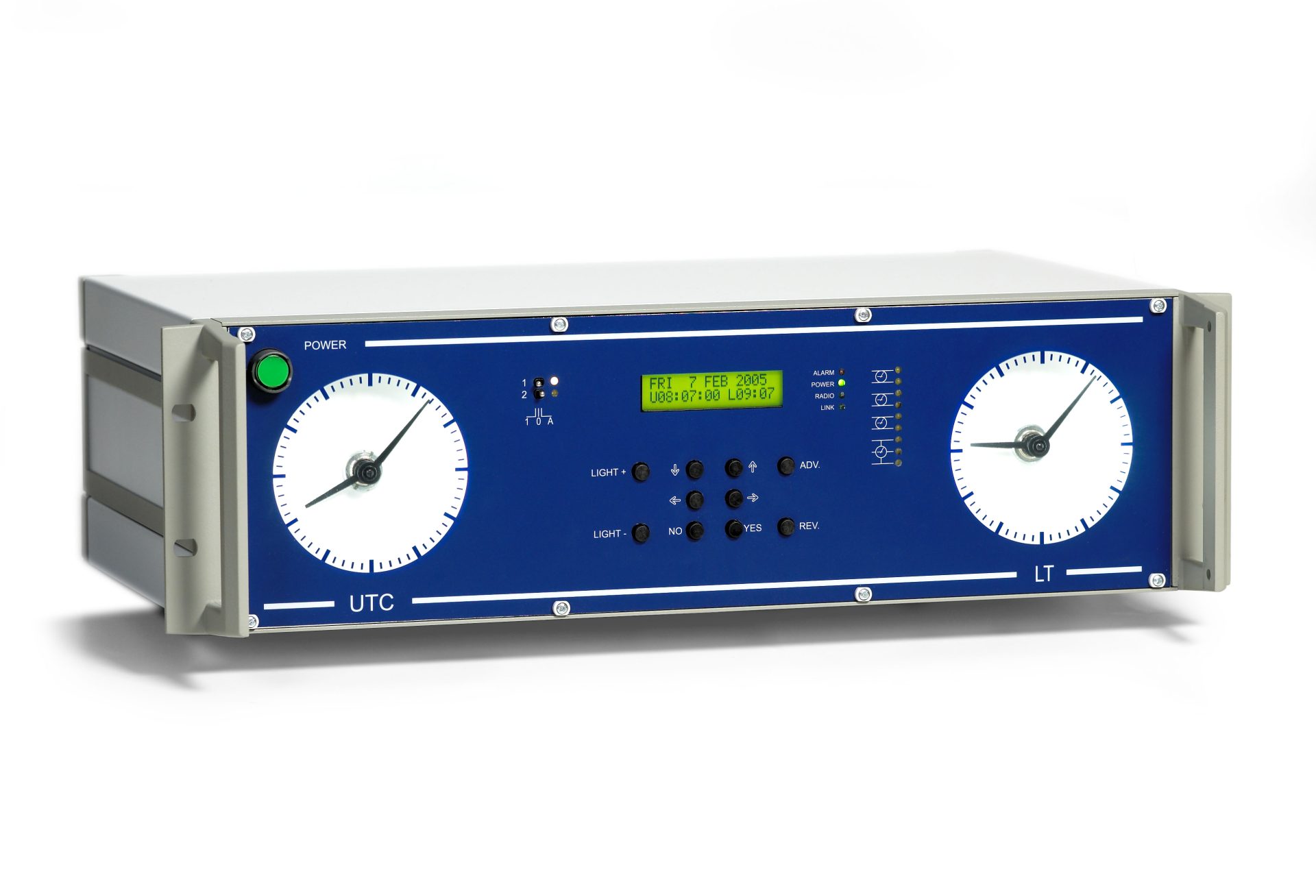 The marine master clock is installed on a 19″ rack and is an ideal solution for the distribution of UTC and local time aboard ship.