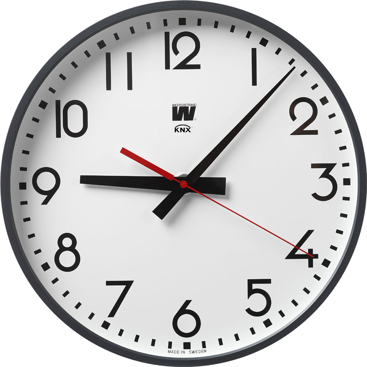 The clock is also available with Impulse, Timecode, NTP, WiFi, KNX, Quartz or Wireless.