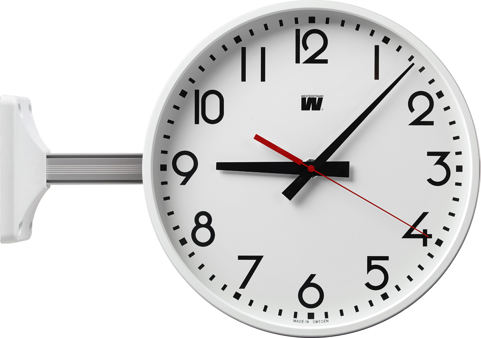 - סימני שעות, דקות ומחוגים בצבע שחור.