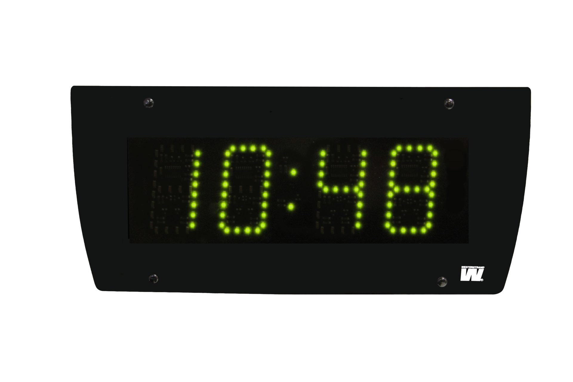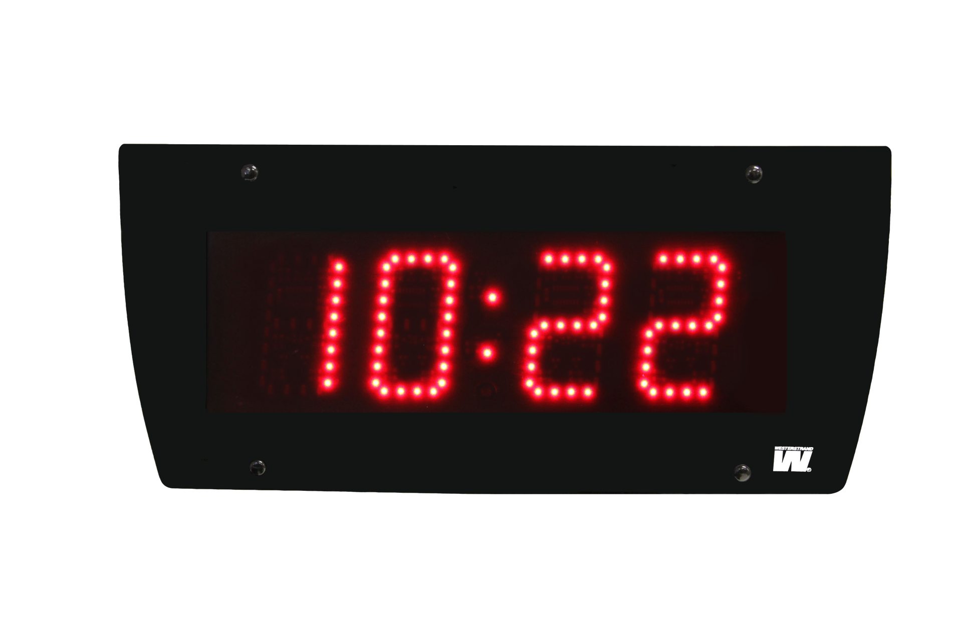 שעון דיגיטלי לשימוש פנימי עם מארז אלומיניום צבוע שחור וחזית פוליקרבונט. זמין עם נוריות LED אדום, ירוק או צהוב.