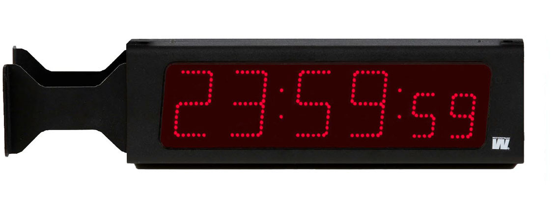 שעון דיגיטלי לשימוש פנימי עם מארז אלומיניום צבוע שחור וחזית פוליקרבונט. זמין עם נוריות LED אדום, ירוק או צהוב.