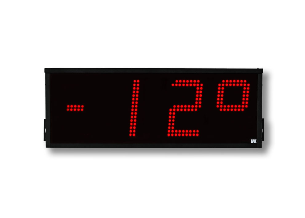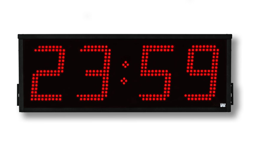 שעון דיגיטלי לשימוש פנימי עם מארז אלומיניום צבוע שחור וחזית פוליקרבונט. זמין עם נוריות LED אדום, .